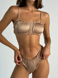The design features a minimalist bra with delicate gathers, adding a touch of playfulness to your look, while the high-waisted panties accentuate your figure, making you feel like a star even on an ordinary day.